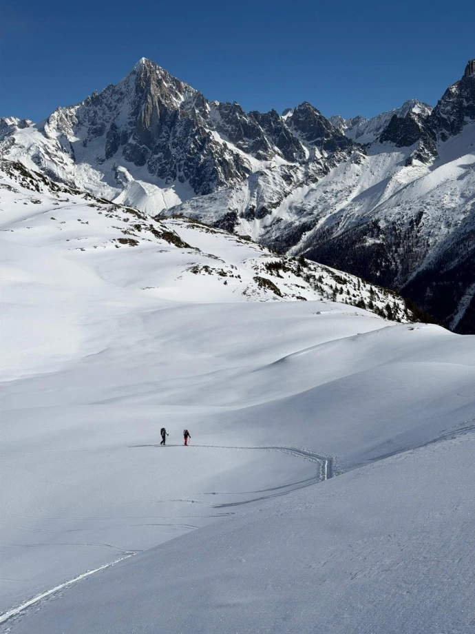 Depuis le Brévent, la Combe de la Vogealle est l'un de ces itinéraires qui résument tout ce qu'on aime dans le ski de randonnée : une neige froide et préservée à souhait, une ambiance sauvage loin des pistes, et un retour skis aux pieds jusqu'à la Flatière. Royal, vraiment.