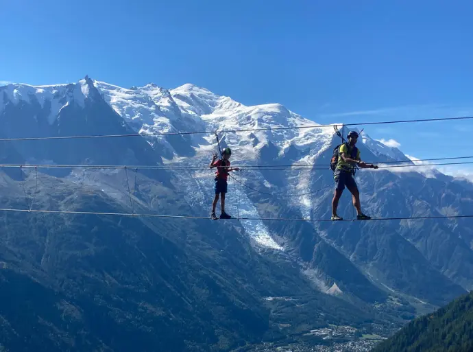 Au cœur des Aiguilles Rouges, la via ferrata des Evettes offre un parcours exceptionnel face au Mont-Blanc. Facilement accessible depuis la télécabine de la Flégère, elle combine panorama grandiose et passages aériens, pour une expérience à la fois ludique et pleine d’émotions.